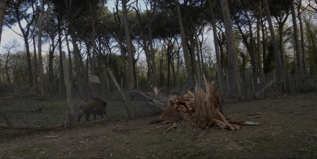 In the Circeo wood, two animals, a fallow deer and a wild boar, are trapped inside a fence. One night, as if by divine will, a powerful typhoon hits the forest causing numerous trees to fall, the largest of these collapses on the fence, freeing the two animals. The two don’t know that anyone who comes out of the woods will be the victim of a spell.